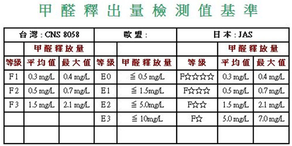 台湾、欧盟、日本人造材甲醛释放等级基准